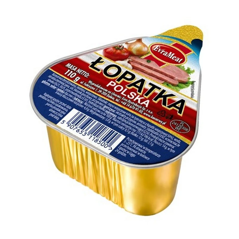 EvraMeat Łopatka Polska 110g to klasyczna konserwa mięsna, idealna dla miłośników tradycyjnych smaków. Zawiera 64% mięsa wieprzowego, w tym 50% łopatki, co gwarantuje intensywny smak i aromat. Dzięki wygodnemu opakowaniu doskonale sprawdzi się jako szybki dodatek do kanapek, przekąsek czy dań na ciepło.