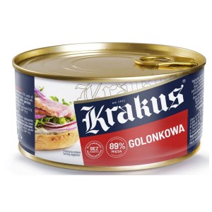 Krakus konserwa golonkowa wieprzowa 300 g to wyjątkowy produkt dla miłośników mięsnych smaków. Starannie przygotowana golonka wieprzowa, duszona w jej własnym sosie, zachowuje bogaty smak i soczystość mięsa. Konserwacja gwarantuje, że golonka pozostaje świeża i pełna aromatu przez długi czas. Doskonała jako składnik dań głównych, idealna na szybki obiad lub ciepłą kolację. Dzięki swojej wszechstronności, może być podawana zarówno jako danie samodzielne, jak i dodatek do różnych potraw. Krakus oferuje wygodę i smak w jednym opakowaniu.