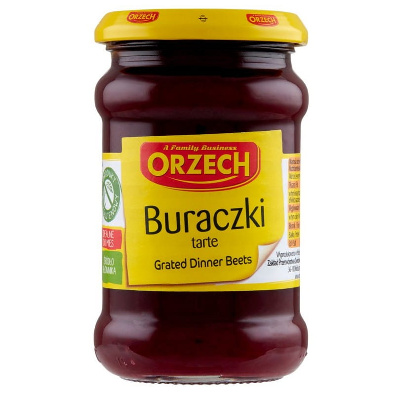 Orzech Buraczki Tarte 290g to klasyczny produkt warzywny, przygotowany z wysokiej jakości, starannie wyselekcjonowanych buraków. Buraczki są drobno tarte, co nadaje im delikatną, gładką konsystencję i sprawia, że doskonale komponują się jako dodatek do dań obiadowych, takich jak kotlety, ziemniaki czy sałatki. Produkt ma naturalnie słodki smak buraków, lekko kwaskowaty dzięki odpowiedniemu przyprawieniu, co podkreśla ich charakterystyczny aromat. Poręczne opakowanie 290g jest idealne do spożycia na raz, zapewniając świeżość i wygodę użycia.