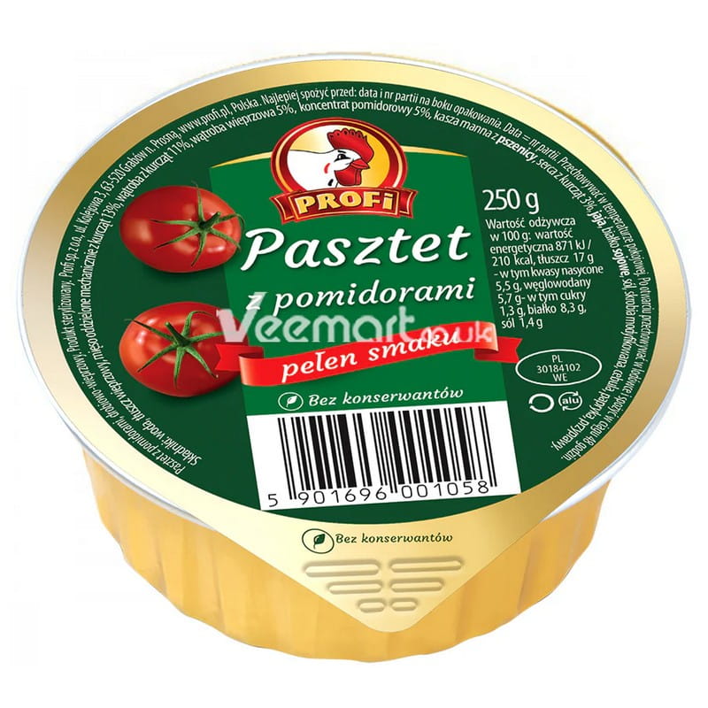 Profi Wielkopolski Pasztet z Pomidorami 250g to wyjątkowa propozycja dla miłośników intensywnych smaków. Ten pasztet łączy w sobie tradycyjny smak wielkopolskiego pasztetu z soczystymi pomidorami, które dodają mu świeżości i subtelnej kwasowości. Pomidory wzbogacają pasztet o głęboki, owocowy aromat, który harmonijnie łączy się z delikatną konsystencją mięsa. Doskonały do smarowania na pieczywie, jako składnik kanapek, czy jako dodatek do dań głównych. Dzięki starannej produkcji i wysokiej jakości składnikom, każdy kęs pasztetu oferuje niezapomniane doznania smakowe.