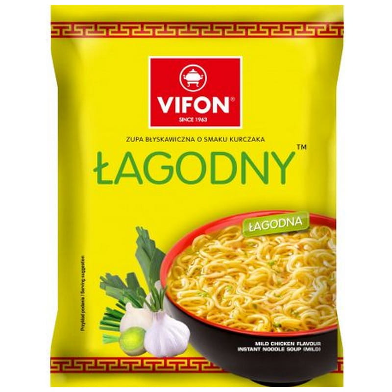 Vifon Kurczak Łagodny 70g to szybkie i smaczne danie, które zachwyci każdego miłośnika delikatnych smaków. Aromatyczna mieszanka przypraw, delikatny smak kurczaka i starannie dobrane składniki sprawiają, że jest to idealna propozycja na szybki posiłek w domu, w pracy czy podczas podróży. Wystarczy zalać gorącą wodą, poczekać kilka minut i cieszyć się pełnią smaku. Kompaktowe opakowanie sprawia, że danie jest wygodne do przechowywania i idealne na każdą okazję, gdy potrzebujesz szybko zaspokoić głód.