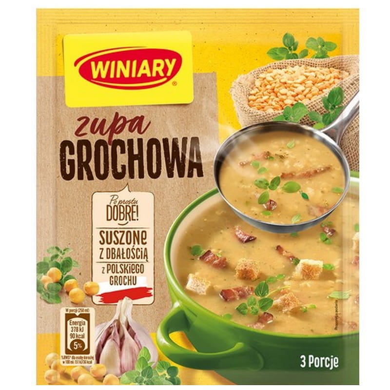 Winiary Zupa Grochowa w opakowaniu 75g to wygodna i szybka opcja dla tych, którzy chcą cieszyć się klasyczną, pożywną zupą grochową bez długiego czasu przygotowania. Ta zupa w proszku zawiera wszystkie niezbędne składniki, które po ugotowaniu tworzą gęstą, aromatyczną i smaczną potrawę, idealną na zimowe dni.