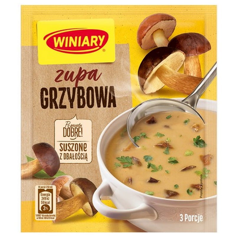 Winiary Zupa Grzybowa w opakowaniu 48g to szybka i łatwa opcja dla tych, którzy chcą cieszyć się bogatym smakiem grzybowej zupy bez potrzeby długiego przygotowywania. Ta zupa w proszku zawiera starannie dobrane składniki, które po ugotowaniu tworzą aromatyczną, kremową zupę z głębokim smakiem leśnych grzybów.